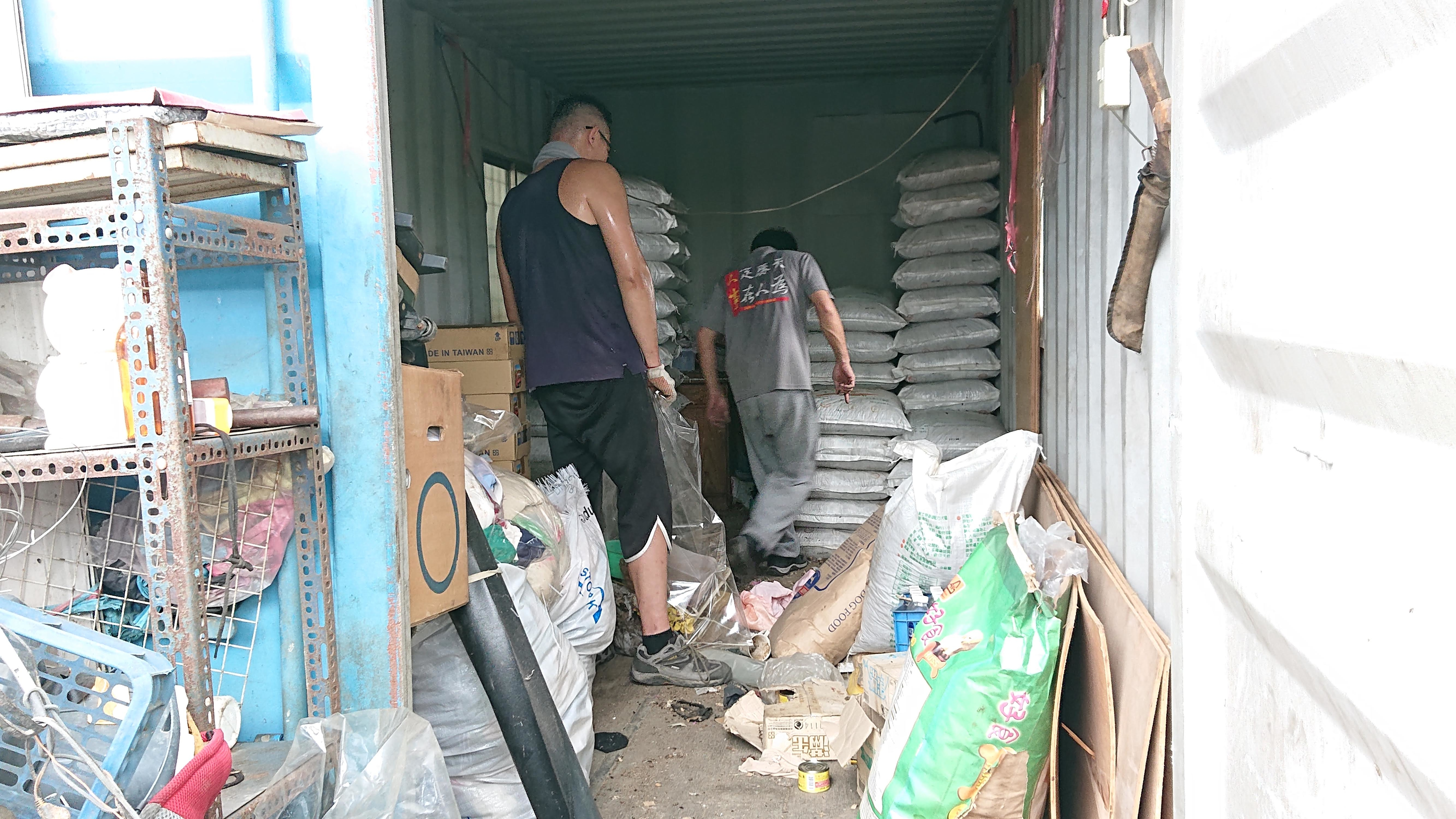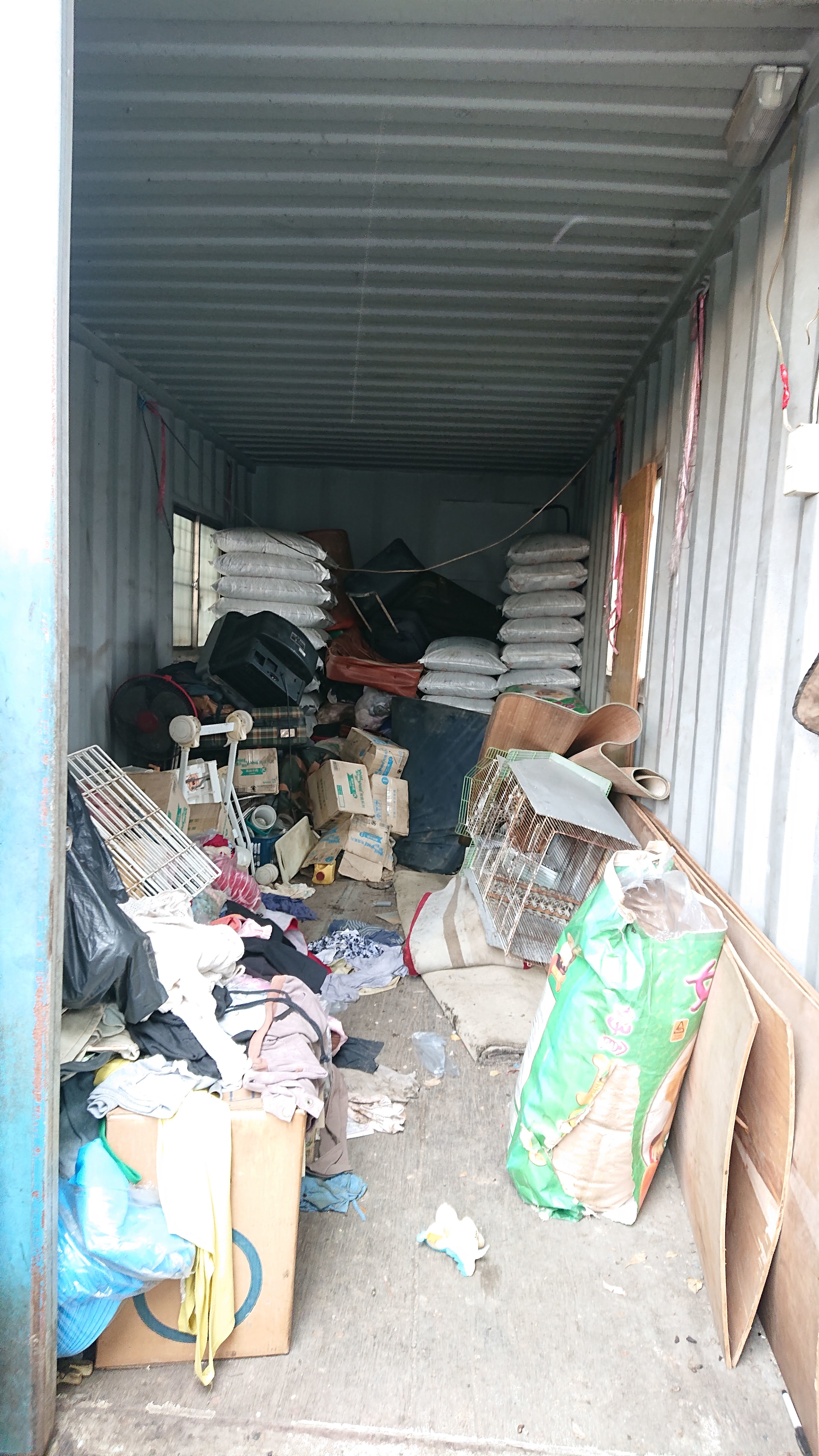 右圖: 整理前,存貨空間凌亂,垃圾雜物滿地