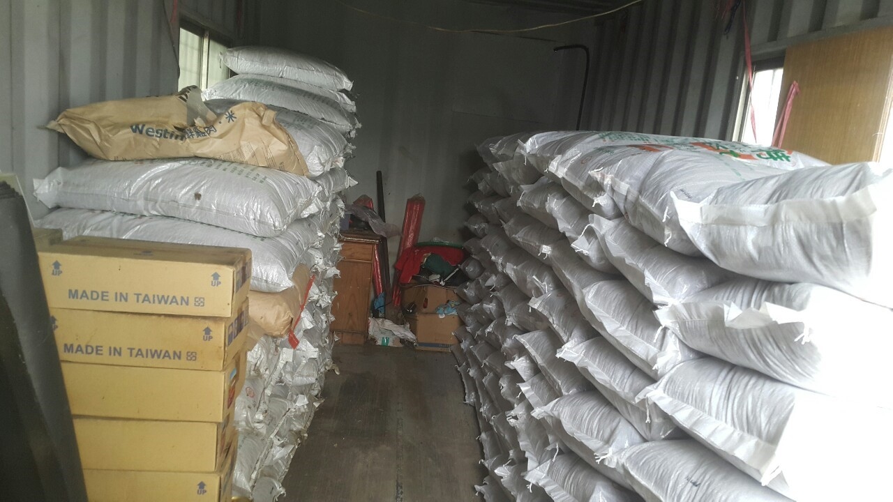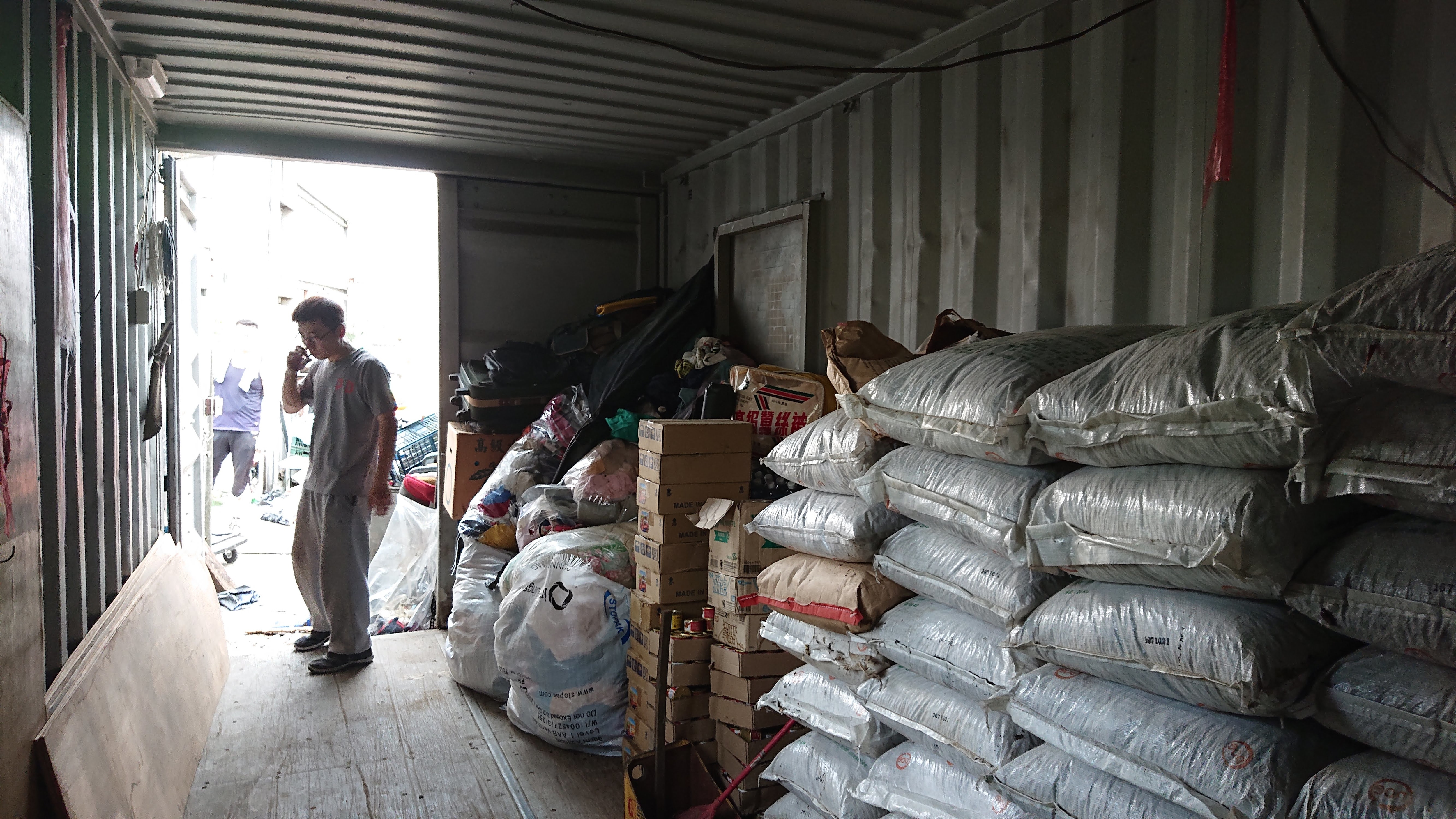 正討論如何整理花媽倉庫,後面為舊庫存糧